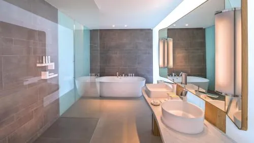 Dimensiuni: 162 mp Numar de camere: 1 camera This suite features a hot tub and a spa bath. This spacious suite features 1 living room, 2 separate bedrooms and 2 bathrooms with a walk-in shower and free toiletries. The air-conditioned suite features a flat-screen TV with cable channels, soundproof walls, a minibar, a tea and coffee maker as well as sea views. The unit has 3 beds.