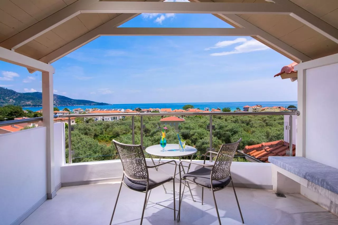 Dimensiuni: 28 mp Numar de camere: 1 camera Cameră elegantă, cu aer condiţionat, acces gratuit la internet WiFi şi balcon cu vedere la Marea Egee. Este prevăzută cu TV, seif şi minibar. Baie privată cu duș