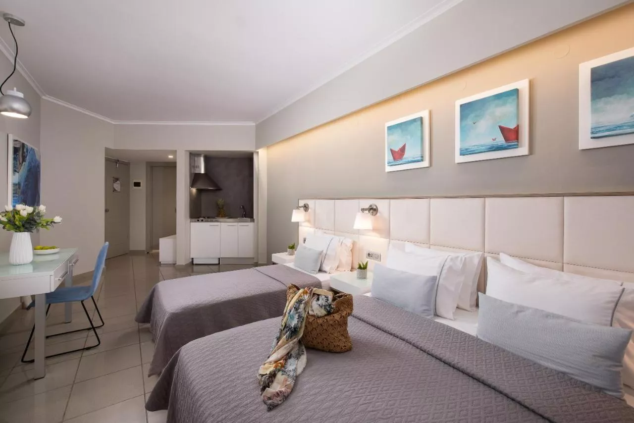 Dimensiuni: 33 mp Numar de camere: 1 camera Equipped with air conditioning, hairdryer and satellite TV. The room offers balcony with sea view. It also includes a kitchenette with fridge and a safe. Free Wi-Fi is available. Baie privată cu duș