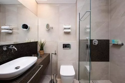 Baie: Halat de baie Prosoape Articole de toaletă gratuite Uscător de păr Toaletă Duş Hârtie igienică Baie privată General : Seif Fier de călcat Facilităţi de călcat Pardoseală de gresie/marmură Încălzire Izolare fonică Plasă de ţânţari Cameră(e) comunicantă(e) disponibilă(e) Aer condiţionat Accesibilitate: Etaje superioare accesibile cu liftul Etaje superioare accesibile doar pe scări Media/Tehnologie: TV cu ecran plat TV Serviciu de streaming (ex. Netflix) Telefon Canale prin cablu Canale prin satelit Dormitor: Paturi extra lungi (> 2 metri) Garderobă sau dulap Servicii: Serviciu de trezire Facilităţile camerei: uscător de rufe Priză lângă pat Pat pliant Exterior: Patio Balcon Bucătărie: Frigider Ustensile de bucătărie Chicinetă Cană fierbător Produse de curățenie Curățenie și dezinfectare: Dezinfectant pentru mâini