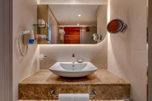 Baie: Halat de baie Prosoape Articole de toaletă gratuite Papuci de casă Uscător de păr Toaletă Cadă Baie privată General : Seif Pardoseală de lemn sau parchet Aer condiţionat Media/Tehnologie: TV cu ecran plat TV Telefon Canale prin satelit Servicii: Serviciu de trezire Facilităţile camerei: uscător de rufe Priză lângă pat Exterior: Balcon Dormitor: Lenjerie de pat Garderobă sau dulap Mâncăruri și băuturi: Minibar Bucătărie: Cană fierbător