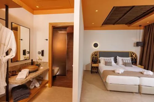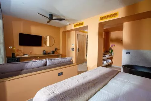 Dimensiuni: 30 mp Numar de camere: 1 camera Caracteristica remarcabilă a acestei suite este cada cu hidromasaj. Această suită are 1 living, 1 dormitor separat și 1 baie cu duș tip walk-in și articole de toaletă gratuite. De asemenea, suita are aer condiționat, TV cu ecran plat și canale prin satelit și terasă cu vedere la mare. Unitatea este prevăzută cu 3 paturi.