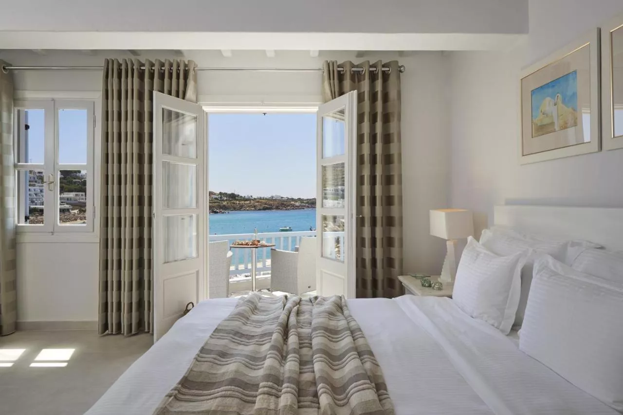 Hotelul Petinos Beach, în stil cicladic, se află la 200 de metri de plaja Platis Gialos din Mykonos. Oferă un lounge în aer liber, o piscină exterioară cu bar și camere pentru oaspeți cu balcoane cu vedere la Marea Egee.