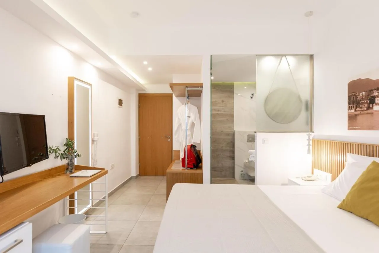 Dimensiuni: 18 mp Numar de camere: 2 camere Această cameră se află la doar 1 minut de mers pe jos de plajă și oferă aer condiționat și balcon cu vedere la Marea Egee. Include TV prin satelit, seif și frigider. Baie privată cu duș