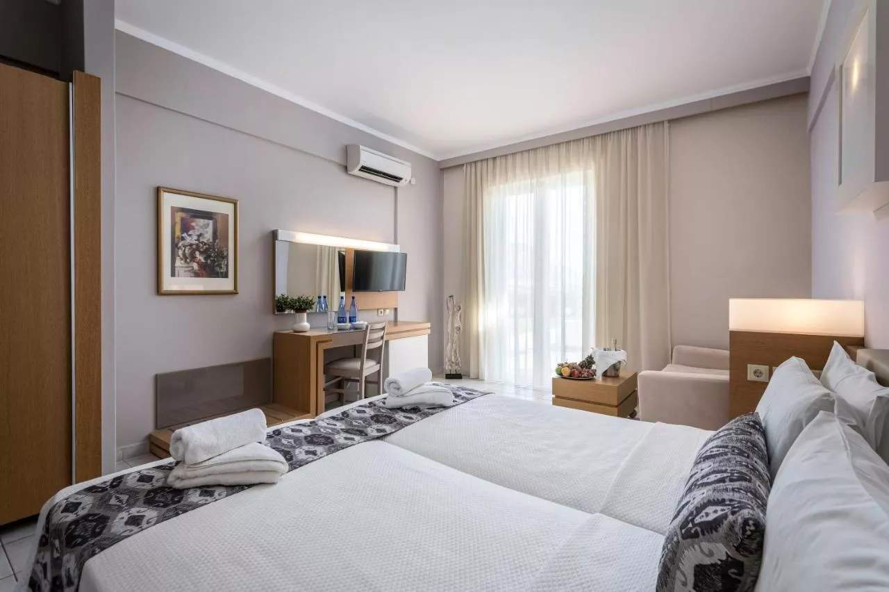 Fiecare cameră și bungalou deschide spre un balcon cu vedere la grădină sau la Marea Egee, și vă va oferi un televizor cu ecran plat, frigider și aer condiționat. Baia privată este dotată cu duș și uscător de păr. Alte facilități includ canale prin satelit.