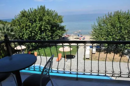 Situat în satul tradițional de pescuit Skala Rachoni, hotelul Sunrise Beach, aflat chiar pe plajă, dispune de o piscină în aer liber, restaurant, centru de fitness și Wi-Fi gratuit în zonele publice. Camerele se deschid spre o terasă sau un balcon.