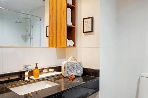 Baie: Halat de baie Prosoape Articole de toaletă gratuite Papuci de casă Uscător de păr Toaletă Duş bideu Hârtie igienică Baie privată General : Seif Aer condiţionat Media/Tehnologie: TV cu ecran plat Telefon Canale prin satelit Servicii: Serviciu de trezire Zonă de living: Canapea Zonă de relaxare Facilităţile camerei: uscător de rufe Canapea extensibilă Mâncăruri și băuturi: Aparat pentru prepararea de ceai/cafea Exterior: Balcon Bucătărie: Cuptor cu microunde Frigider Chicinetă Cană fierbător Vedere: Vedere Dormitor: Garderobă sau dulap