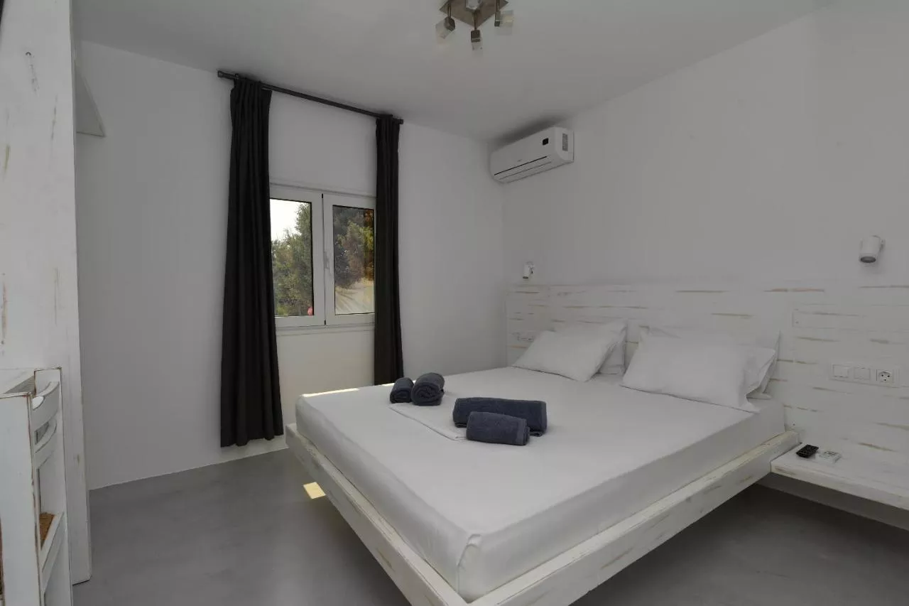 Dimensiuni: 25 mp Numar de camere: 2 camere Acest bungalou este situat într-o grădină frumoasă, în stil cicladic tradițional. Are aer condiționat, TV, telefon, frigider, baie și terasă.