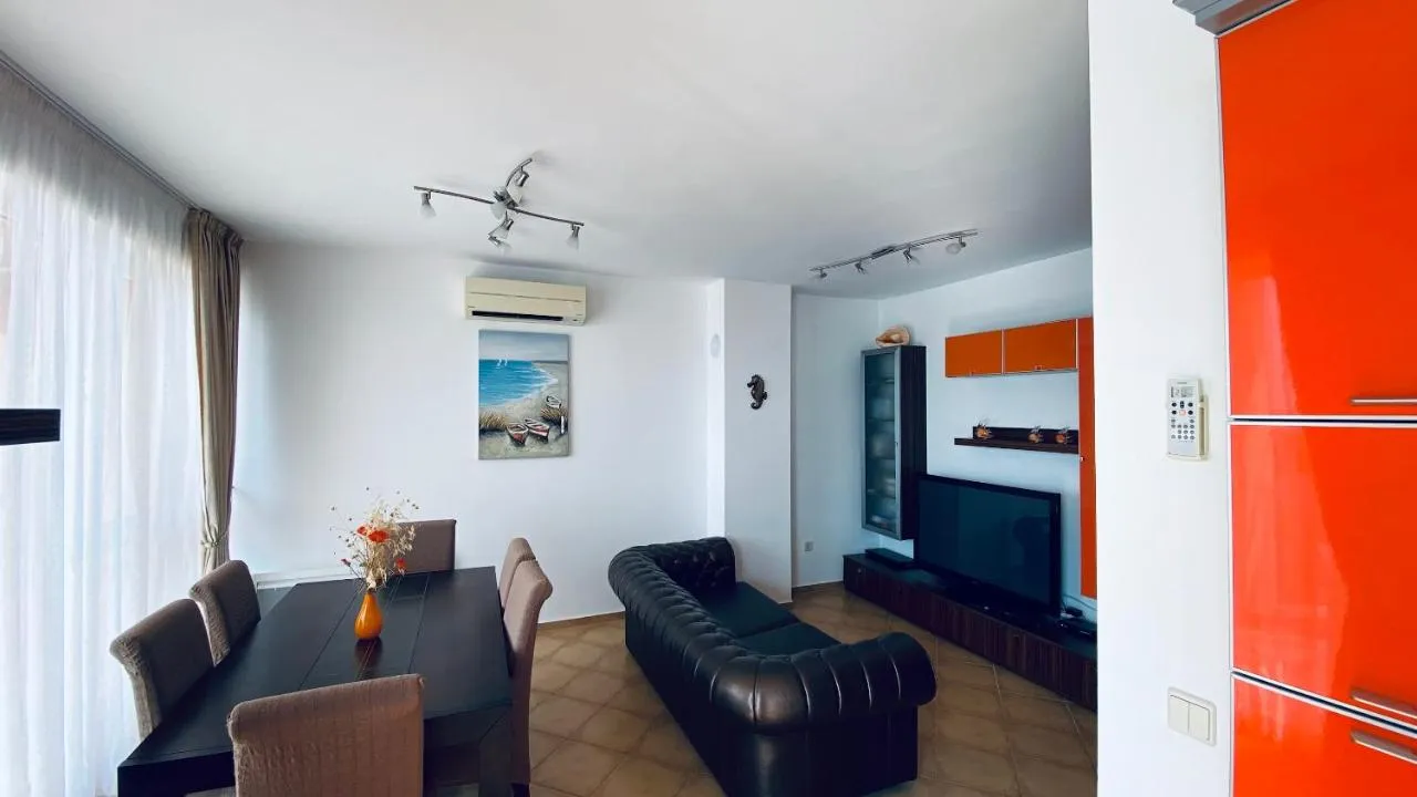 Dimensiuni: 100 mp Numar de camere: 2 camere This apartment boasts a pool with a view. Featuring a private entrance, this air-conditioned apartment comprises 1 living room, 2 separate bedrooms and 1 bathroom with a bath and a shower. Meals can be prepared in the well-fitted kitchen, which comes with a stovetop, a refrigerator, a dishwasher and kitchenware. The spacious apartment provides a flat-screen TV with streaming services, a washing machine, soundproof walls, a tea and coffee maker as well as sea views. The unit offers 6 beds. Baie privată cu cadă