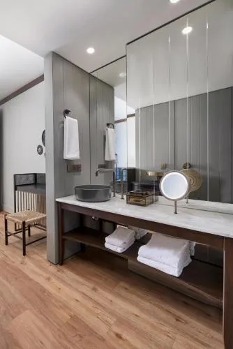 Baie: Halat de baie Prosoape Articole de toaletă gratuite Papuci de casă Uscător de păr Cadă spa Toaletă Duş Hârtie igienică Baie privată Bucătărie: Mașină de cafea Cană fierbător General : Seif Pardoseală de lemn sau parchet Fier de călcat Ventilator Facilităţi de călcat Pardoseală de gresie/marmură Încălzire Izolare fonică Aer condiţionat Accesibilitate: Etaje superioare accesibile cu liftul Întreaga unitate accesibilă cu scaunul cu rotile Media/Tehnologie: TV cu ecran plat TV Telefon Canale prin cablu Canale prin satelit Servicii: Serviciu de trezire Zonă de living: Canapea Exterior: Mobilier de grădină Terasă Vedere: Vedere la piscină Facilităţile camerei: uscător de rufe Priză lângă pat Pat pliant Mâncăruri și băuturi: Aparat pentru prepararea de ceai/cafea Minibar Dormitor: Lenjerie de pat Dressing Garderobă sau dulap Activităţi: Cadă cu hidromasaj Curățenie și dezinfectare: Dezinfectant pentru mâini