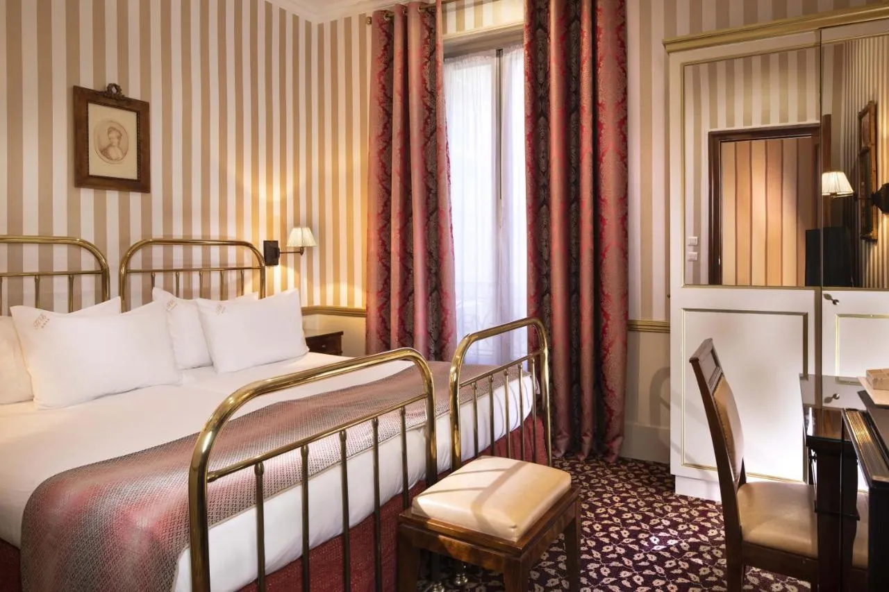 Dimensiuni: 15 mp Numar de camere: 2 camere With a view of the Arc de Triomphe, this air-conditioned room features a flat-screen TV with cable channels, an electric kettle and a minibar. It also has a private bathroom with free toiletries, a hairdryer and a bath.
