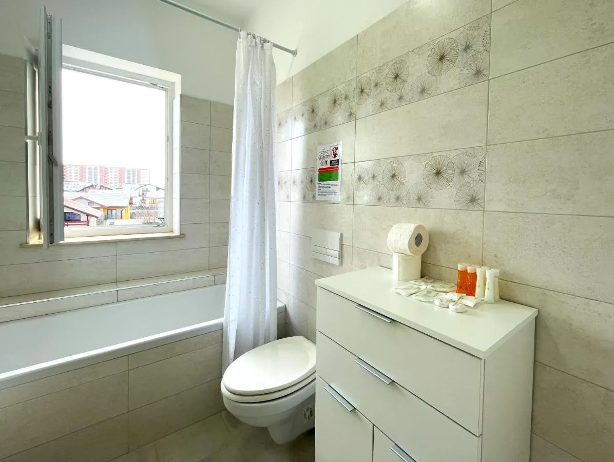 Dimensiuni: 40 mp Numar de camere: 2 camere Featuring 1 bedroom, this apartment offers 1 bathroom with a bath, a seating area and terrace where you can relax. Meals can be prepared in the well-fitted kitchen, which comes with a refrigerator, kitchenware and a microwave. Boasting a balcony with an inner courtyard view, this apartment also provides a tea and coffee maker and a flat-screen TV with streaming services. The unit has 1 bed. Baie privată cu cadă