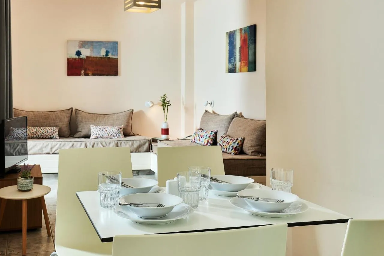 Dimensiuni: 45 mp Numar de camere: 2 camere Very spacious apartment featuring a furnished balcony overlooking the mountain and the Cretan Sea. Includes a separate bedroom, seating area and modern kitchenette. Offers: