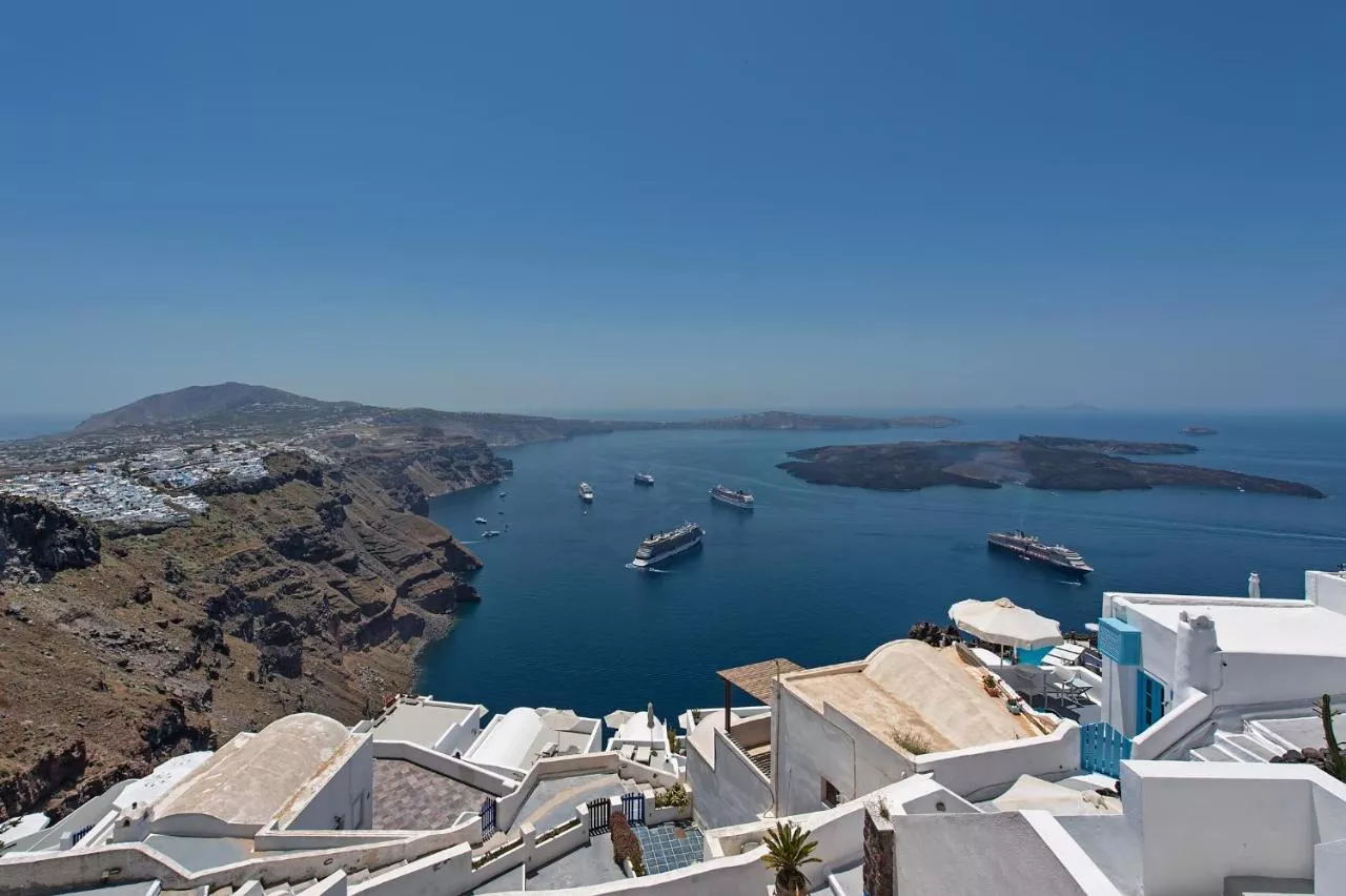 Situat în Imerovigli, Santorini Folia Bianca oferă vederi la mare și WiFi gratuit, la 1,7 km de Muzeul Arheologic din Thera și la 11 km de Portul Santorini.