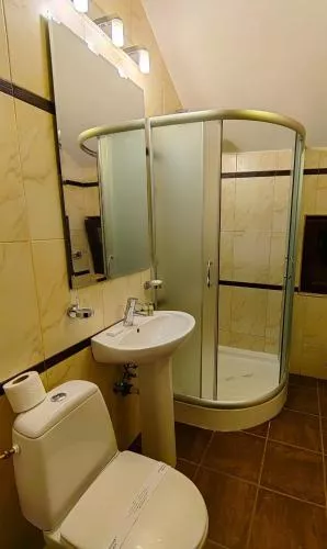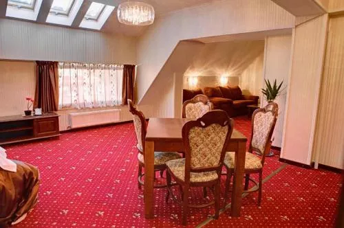 Toate camerele sunt decorate cu mobilier de lemn în stil clasic la Hotelul Bistrita. Se oferă o zonă de relaxare cu un televizor cu ecran plat, minibar și baie privată cu articole de toaletă.