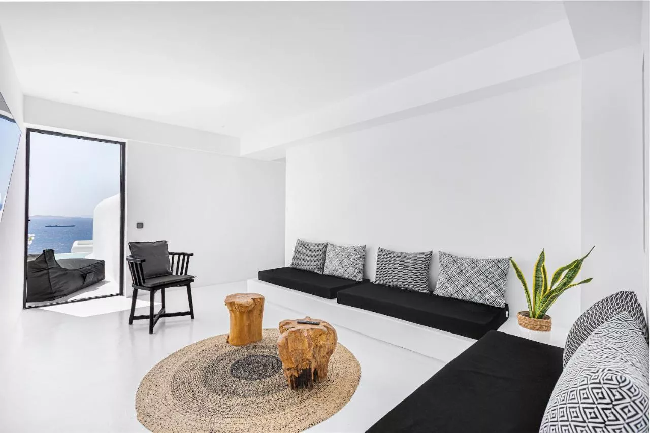 Stilul cicladic al hotelului Tagoo Black Mykonos este situat deasupra vechiului port din Mykonos, la 600 de metri de plaja Tourlos. Exista o piscina cu bar la piscina si o zona umbrita cu vedere la mare, ideala pentru micul dejun sau pentru apusurile de soare.