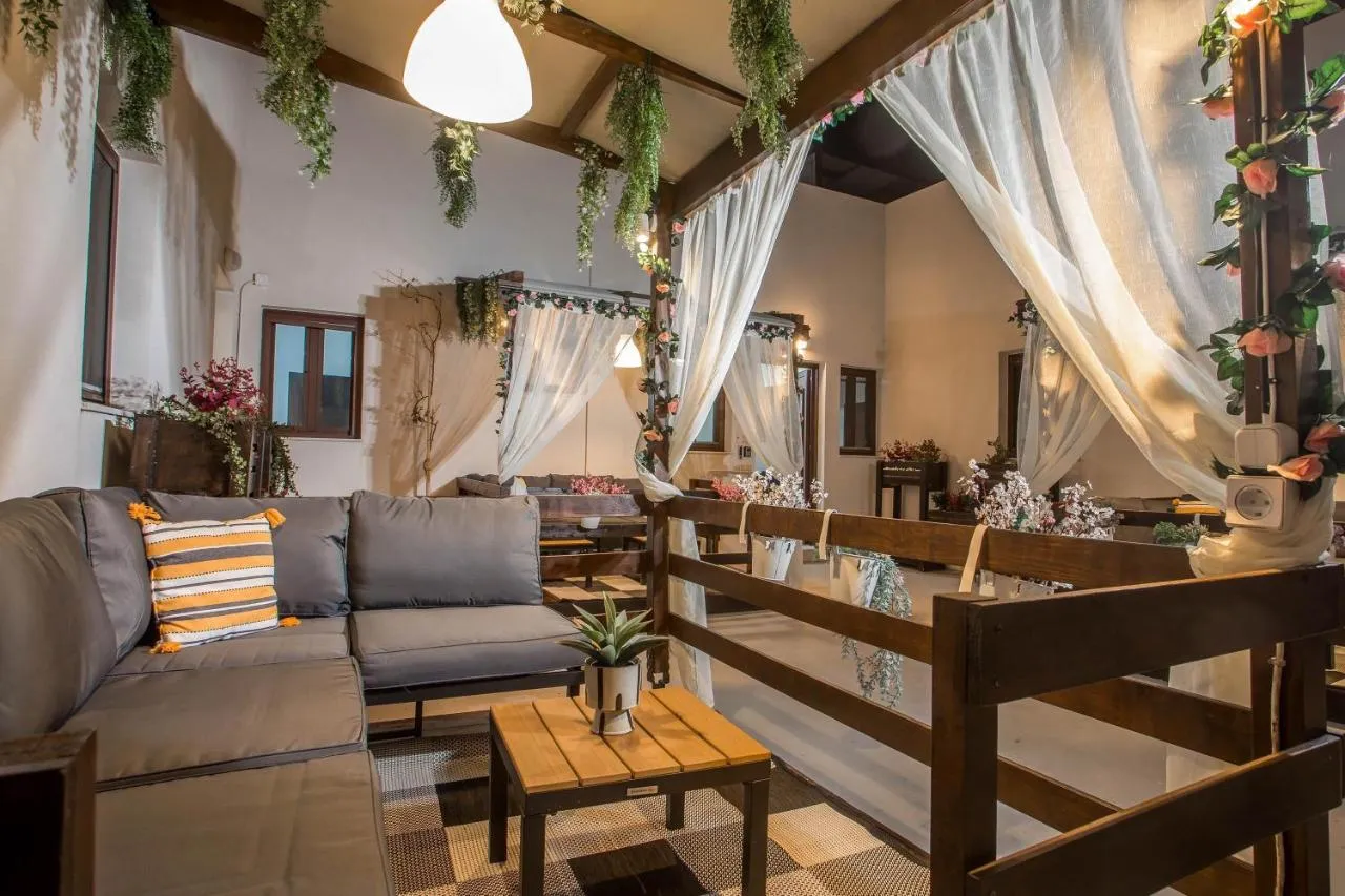 Bucătărie: Mașină de cafea Masă Frigider Plită de gătit Ustensile de bucătărie Cană fierbător Bucătărie Scaun înalt pentru copii General : Seif Fier de călcat Facilităţi de călcat Pardoseală de gresie/marmură Intrare privată Încălzire Izolare fonică Aer condiţionat Media/Tehnologie: TV cu ecran plat TV Zonă de living: Canapea Zonă de relaxare Zonă de luat masa Exterior: Mobilier de grădină Zonă de luat masa în aer liber Facilităţile camerei: uscător de rufe Canapea extensibilă Baie: Prosoape Articole de toaletă gratuite Uscător de păr Toaletă Hârtie igienică Cadă Baie privată Caracteristicile clădirii: Independentă Dormitor: Lenjerie de pat Garderobă sau dulap