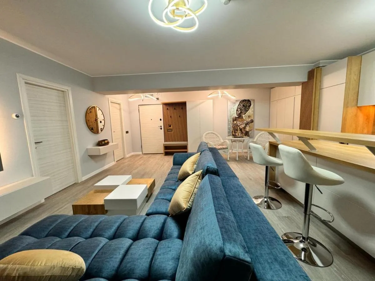 Vedere: Vedere la mare Media/Tehnologie: TV cu ecran plat TV Serviciu de streaming (ex. Netflix) Canale prin satelit Bucătărie: Cuptor Cuptor cu microunde Prăjitor de pâine Uscător de haine Maşină de spălat Produse de curățenie Mașină de cafea Masă Frigider Plită de gătit Cană fierbător Bucătărie General : Fier de călcat Facilităţi de călcat Pardoseală de gresie/marmură Încălzire Plasă de ţânţari Aer condiţionat Detector de monoxid de carbon Zonă de living: Zonă de relaxare Canapea Zonă de luat masa Dormitor: Lenjerie de pat Dressing Garderobă sau dulap Facilităţile camerei: Canapea extensibilă uscător de rufe Priză lângă pat Baie: Hârtie igienică Prosoape Uscător de păr Toaletă Duş bideu Baie privată Accesibilitate: Etaje superioare accesibile cu liftul Caracteristicile clădirii: Apartament privat în clădire Mâncăruri și băuturi: Aparat pentru prepararea de ceai/cafea Exterior: Balcon Distanțare fizică: Aer condiționat individual pentru fiecare cameră de la proprietate Curățenie și dezinfectare: Dezinfectant pentru mâini