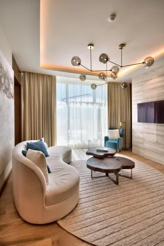 Dimensiuni: 70 mp Numar de camere: 4 camere Providing free toiletries and bathrobes, this suite includes a private bathroom with a bath, a shower and a hairdryer. The fully equipped kitchen features a stovetop, a refrigerator, a dishwasher and kitchenware. The spacious air-conditioned suite provides a TV with streaming services, a private entrance, soundproof walls, a minibar as well as sea views.