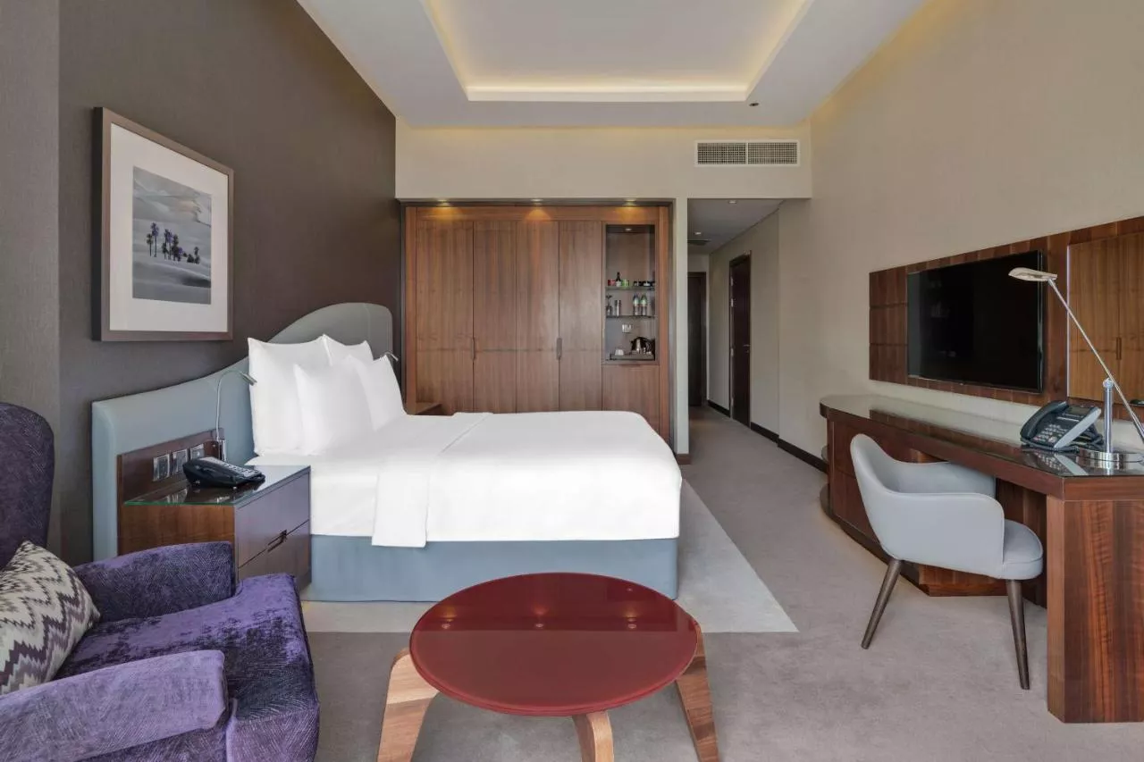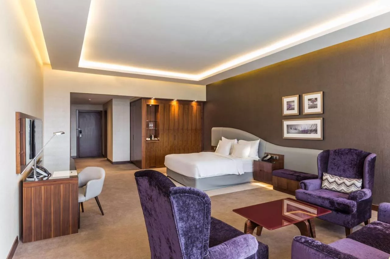 Aceste suite oferă zone separate de dormit și de living. Cu o baie bine echipată, cu duș cu efect de ploaie, halat de baie și papuci, Suitele Junior vă permit să vă relaxați și să vă bucurați de sejur. De asemenea, beneficiați de acces exclusiv la Business Class Lounge, unde vă așteaptă gustări și băuturi răcoritoare. Această cameră dublă are 2 televizoare cu ecran plat cu WiFi gratuit, pentru ca oaspeții să se poată bucura de programele de divertisment favorite, halate de baie, izolare fonică și aer condiționat.