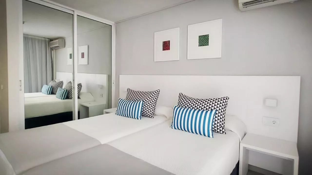 Dormitoarele cu aer condiționat de la Hotelul Blue Sea Lagos de Cesar dispun de o zonă de relaxare separată cu canapea extensibilă și un balcon privat.