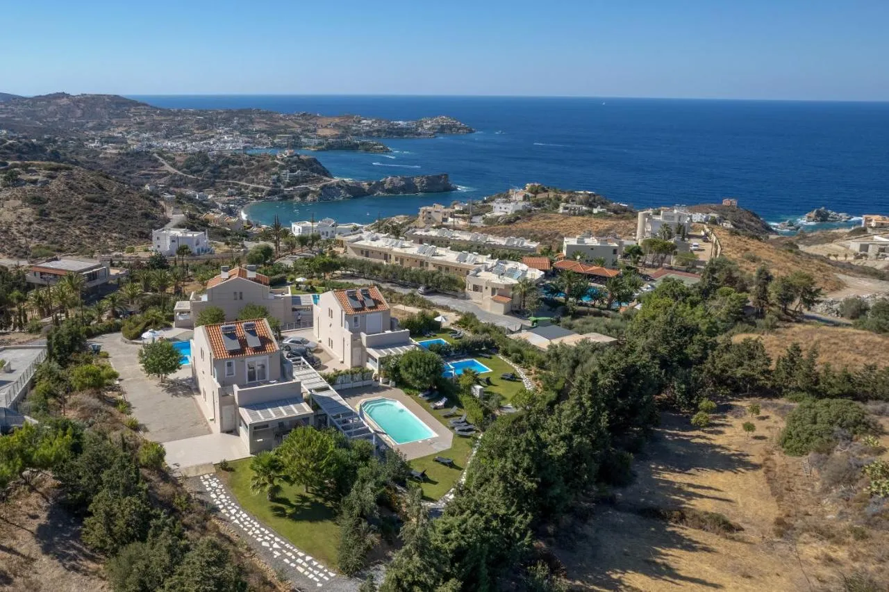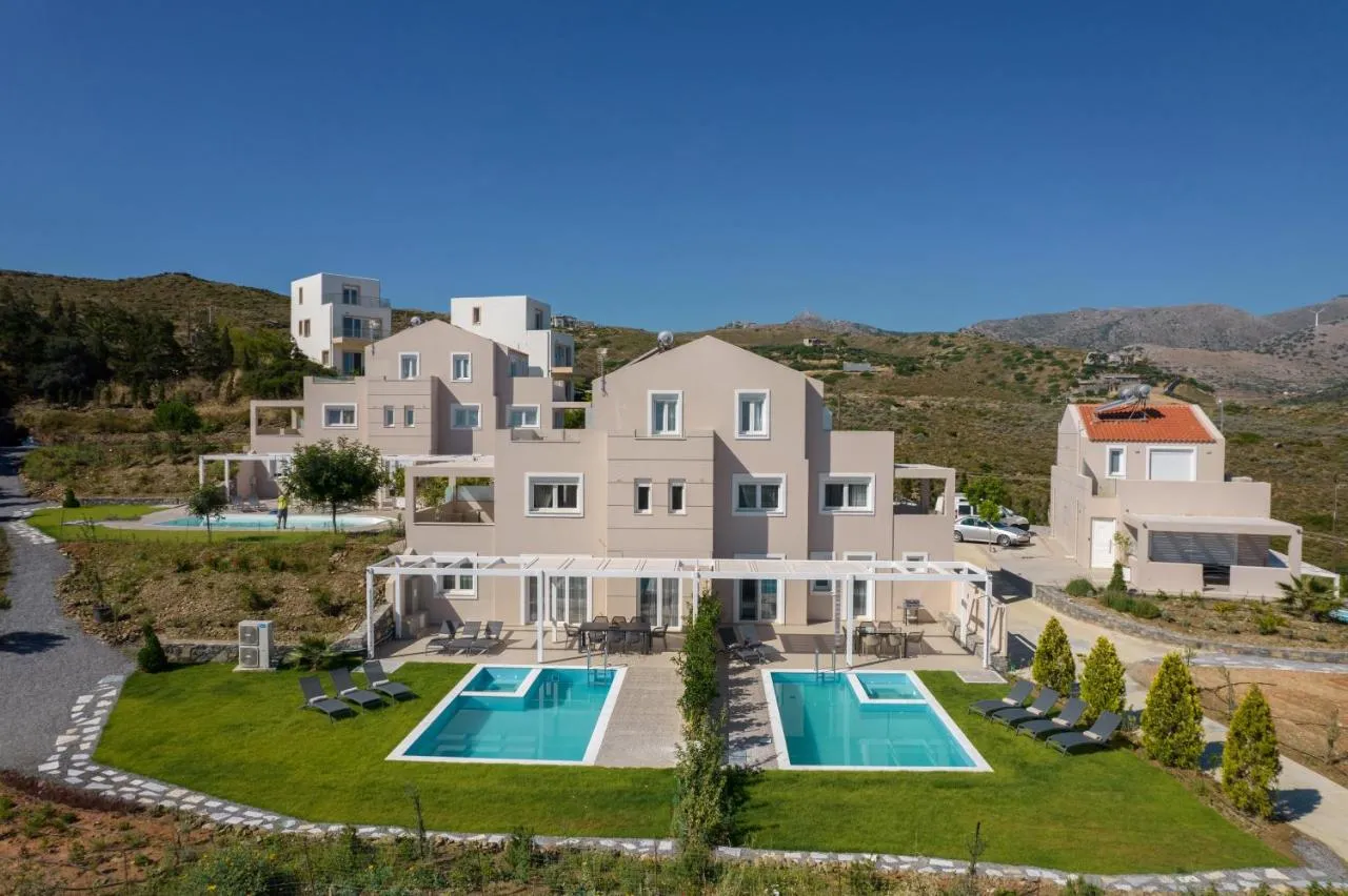 Vilele Blue Hills de la Estia oferă vedere la mare, WiFi gratuit și parcare privată gratuită, fiind situate în Agia Pelagia, la 1,9 km de plaja Ligaria. Cu vedere la grădină, această cazare oferă o terasă și o piscină. Vila dispune de camere pentru familii.