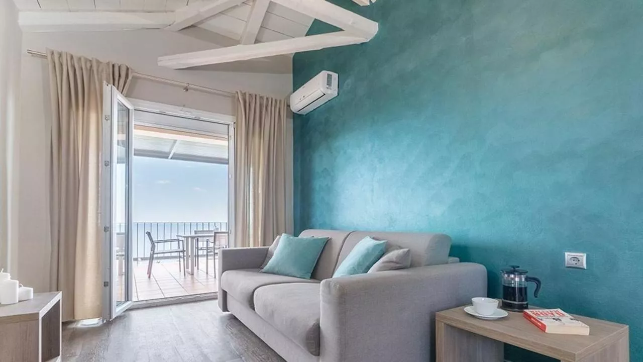 Dimensiuni: 34 mp Numar de camere: 1 camera Această suită beneficiază de acces la o piscină cu vedere. De asemenea, această suită are aer condiționat, 2 livinguri, 1 dormitor separat și 1 baie cu duș. Chicineta suitei, dotată cu frigider și ustensile de bucătărie, poate fi folosită pentru gătit și pentru depozitarea alimentelor. În plus, această suită are zonă de relaxare, TV cu ecran plat și balcon cu vedere la mare. Unitatea include 2 paturi. Baie privată cu duș
