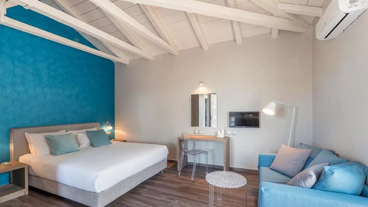 Dimensiuni: 41 mp Numar de camere: 1 camera Această suită are piscină cu vedere. Această suită are aer condiționat, 1 living, 1 dormitor separat și 1 baie cu duș. Chicineta suitei, dotată cu frigider și ustensile de bucătărie, poate fi folosită pentru gătit și pentru depozitarea alimentelor. De asemenea, suita are pardoseală din parchet, zonă de relaxare cu TV cu ecran plat, dulap, canapea și vedere la mare. Unitatea este prevăzută cu 2 paturi. Baie privată cu duș