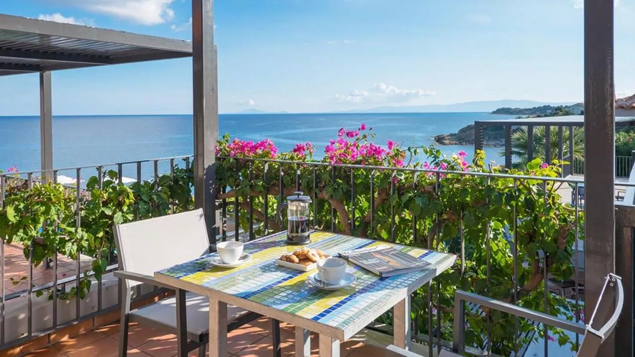 Bathroom: Bathrobe Hairdryer Toilet Shower Toilet paper Private bathroom Room Amenities: Hardwood or parquet floors Sofa Iron Ironing facilities Seating Area Socket near the bed Sofa bed Air conditioning Outdoor & View: Sea view Pool view Balcony Food & Drink: Dining table Outdoor furniture Refrigerator Kitchenware Kitchenette Media & Technology: Flat-screen TV TV Services & Extras: Towels Building characteristics: Detached
