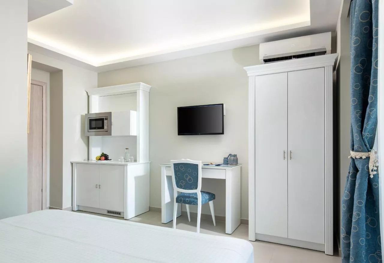 Unitățile au pardoseli cu gresie și sunt dotate cu o chicinetă complet echipată cu cuptor cu microunde, un televizor cu ecran plat și canale prin satelit, precum și o baie privată cu duș și uscător de păr. Unele unități au terasă și/sau balcon cu vedere la mare sau grădină.