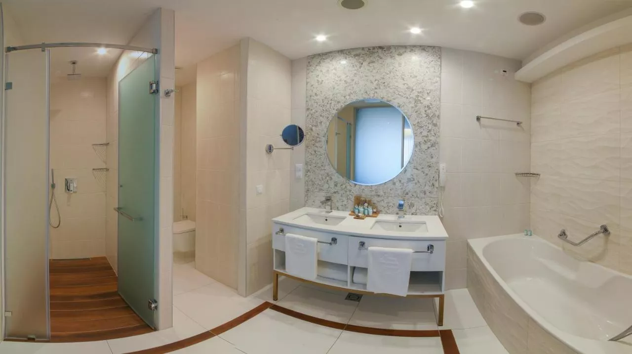 Bucătărie: Mașină de cafea Frigider Cană fierbător General : Seif Aer condiţionat Vedere: Vedere la mare Accesibilitate: Etaje superioare accesibile cu liftul Media/Tehnologie: TV cu ecran plat Telefon Canale prin cablu Canale prin satelit Servicii: Serviciu de trezire Baie: Prosoape Articole de toaletă gratuite Papuci de casă Uscător de păr Toaletă Duş Hârtie igienică Cadă Baie privată Zonă de living: Zonă de relaxare Mâncăruri și băuturi: Aparat pentru prepararea de ceai/cafea Minibar Exterior: Balcon Dormitor: Lenjerie de pat Garderobă sau dulap
