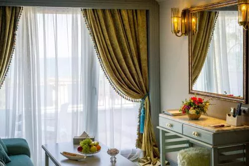 General : Detector de monoxid de carbon Seif Pardoseală de gresie/marmură Izolare fonică Aer condiţionat Accesibilitate: Etaje superioare accesibile cu liftul Media/Tehnologie: TV cu ecran plat TV Telefon Canale prin cablu Servicii: Serviciu de trezire Zonă de living: Canapea Zonă de relaxare Facilităţile camerei: uscător de rufe Priză lângă pat Baie: Prosoape Papuci de casă Uscător de păr Toaletă Duş Hârtie igienică Cadă Baie privată Exterior: Balcon Vedere: Vedere Dormitor: Lenjerie de pat Garderobă sau dulap Bucătărie: Cană fierbător Uscător de haine