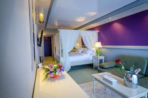 Dimensiuni: 55 mp Numar de camere: 2 camere Această suită spațioasă are 1 dormitor, zonă de relaxare și 1 baie cu duș tip walk-in și cadă. Suita are pereți izolați fonic, aer condiționat, TV cu ecran plat cu servicii de streaming, dulap, aparat de ceai și cafea și vedere la mare. Unitatea de cazare oferă 1 pat.
