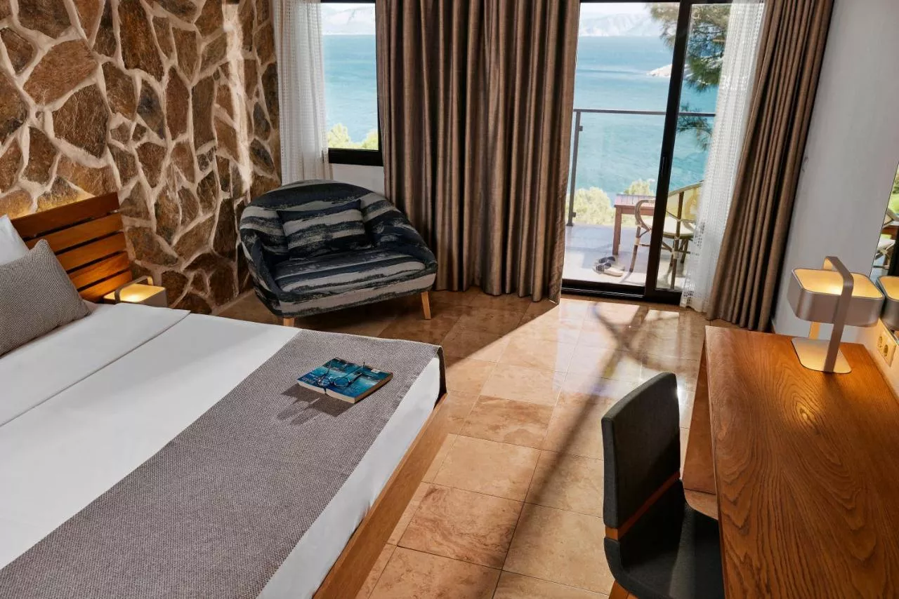 Dimensiuni: 28 mp Numar de camere: 8 camere Această cameră are fierbător electric, facilităţi de ceai şi cafea, aer condiţionat, minibar, zonă de relaxare și balcon/terasă cu vedere la mare. Baie privată cu duș