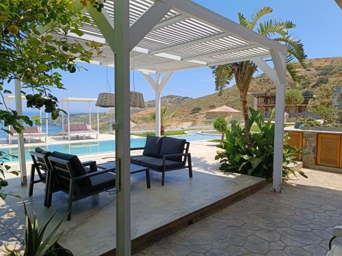 "BlueVedere" Sea View Luxury Villa, o vilă de lux cu vedere la Marea Cretană, dispune de o piscină în aer liber și este situată la 4 km de Agia Pelagia, în regiunea Creta. Oferă parcare privată gratuită și livrare gratuită de produse alimentare. Cea mai apropiată plajă este la 400 de metri distanță.