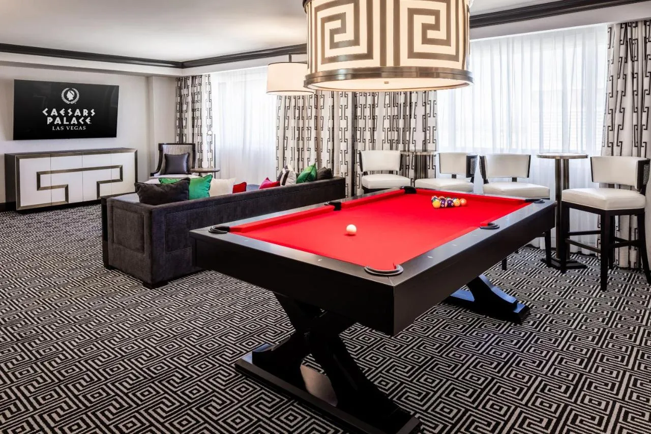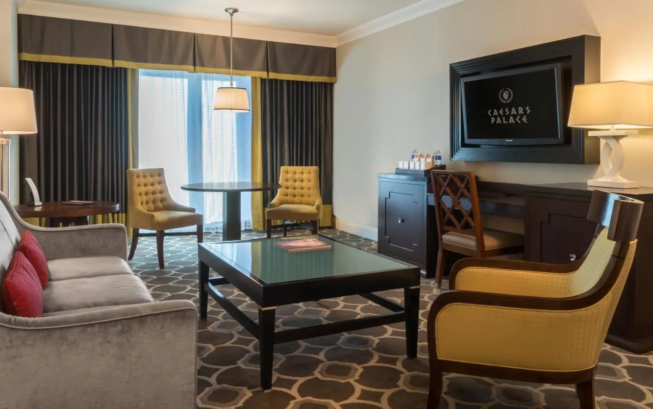 Camerele de la Caesars Palace includ o baie proprie cu produse de toaletă gratuite. Serviciul de cameră este disponibil 24 de ore pe zi.