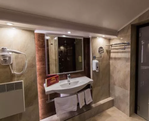 Baie: Halat de baie Toaletă Duş Prosoape Hârtie igienică Papuci de casă Baie privată Uscător de păr Bucătărie: Frigider Mașină de cafea Dormitor: Lenjerie de pat Garderobă sau dulap General : Seif Încălzire Accesibilitate: Etaje superioare accesibile cu liftul Media/Tehnologie: TV cu ecran plat Telefon