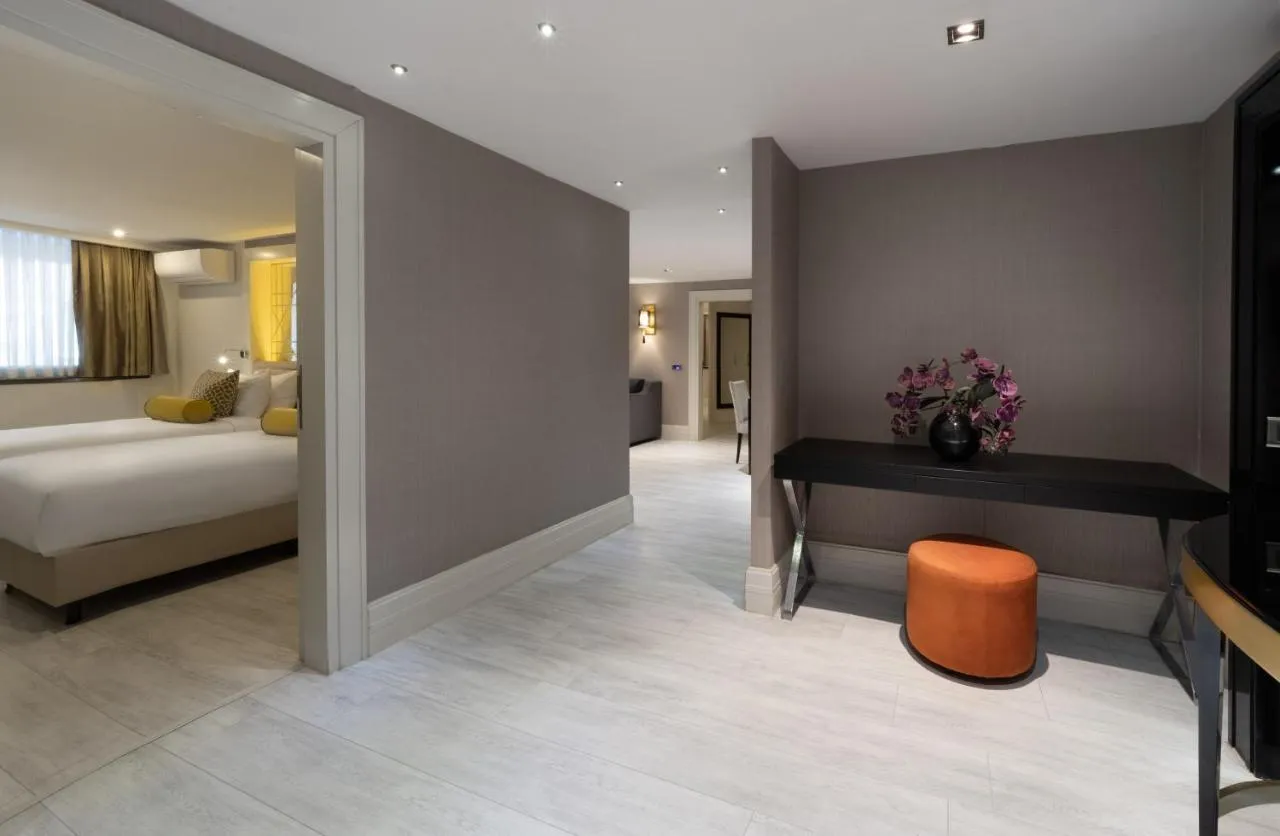 Dimensiuni: 96 mp Numar de camere: 7 camere This suite has a electric kettle, bathrobe and air conditioning. You will also find a study desk and armchair in this spacious room. City view is also offered.