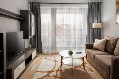 Dimensiuni: 62 mp Numar de camere: 1 camera This spacious apartment consists of 1 living room, 1 separate bedroom and 1 bathroom with a bath and free toiletries. Guests can make meals in the kitchen that is equipped with a stovetop, a refrigerator, a dishwasher and kitchenware. This apartment features a washing machine, a private entrance, a flat-screen TV with streaming services and a terrace. The unit offers 2 beds.