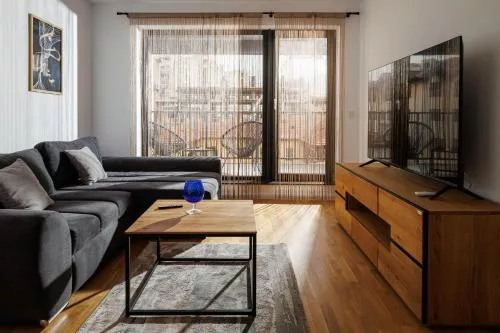 Dimensiuni: 62 mp Numar de camere: 1 camera This spacious apartment is comprised of 1 living room, 1 separate bedroom and 1 bathroom with a bath and free toiletries. In the well-fitted kitchen, guests will find a stovetop, a refrigerator, a dishwasher and kitchenware. The air-conditioned apartment offers a flat-screen TV with streaming services, a washing machine, a private entrance, soundproof walls as well as city views. The unit offers 2 beds.