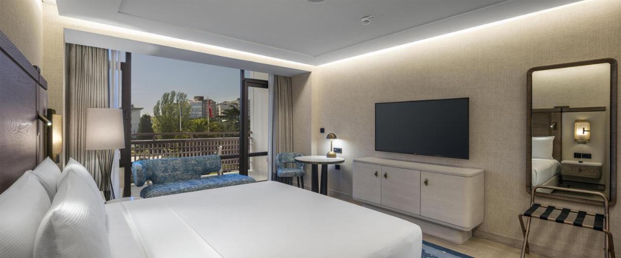 Dimensiuni: 38 mp Numar de camere: 2 camere Această cameră King are ferestre mari, din podea până în tavan, care oferă lumină naturală, precum și balcon privat cu vedere la Bosfor. Oaspeții au la dispoziție o zona de lucru separată, cu un birou mare şi WiFi gratuit. Dotările includ TV HD cu canale multinaţionale. De asemenea, există o baie elegantă cu marmură.