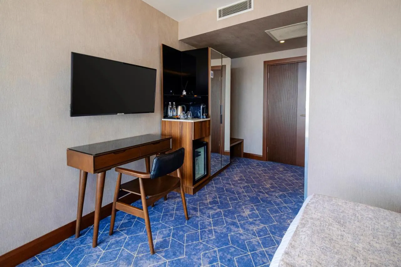 General : Seif Fier de călcat Facilităţi de călcat Încălzire Izolare fonică Aer condiţionat Accesibilitate: Etaje superioare accesibile cu liftul Media/Tehnologie: TV cu ecran plat TV Telefon Canale prin satelit Servicii: Serviciu de trezire Facilităţile camerei: uscător de rufe Priză lângă pat Baie: Prosoape Articole de toaletă gratuite Papuci de casă Uscător de păr Toaletă Duş Hârtie igienică Baie privată Mâncăruri și băuturi: Aparat pentru prepararea de ceai/cafea Minibar Dormitor: Lenjerie de pat Garderobă sau dulap Vedere: Vedere la oraș Bucătărie: Cană fierbător