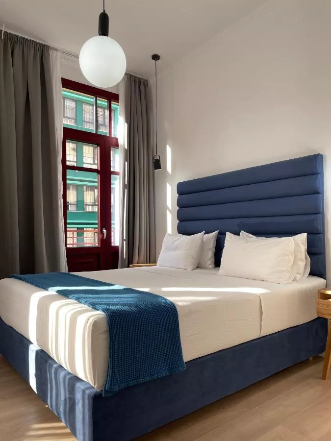 Room Amenities: Safety deposit box Hardwood or parquet floors Iron Ironing facilities Seating Area Tile/marble floor Private entrance Sofa bed Heating Cleaning products Air conditioning Extra long beds (> 2 metres) Sofa Socket near the bed Wardrobe or closet Soundproofing Media & Technology: Flat-screen TV TV Streaming service (like Netflix) Laptop safe Food & Drink: Outdoor furniture Coffee machine Dining table Tea/Coffee maker Refrigerator Minibar Electric kettle Children's high chair Bathroom: Free toiletries Toilet paper Slippers Hairdryer Toilet Shower Bidet Private bathroom Services & Extras: Linen Wake-up service Towels Entertainment and family services: Child safety socket covers Baby safety gates Accessibility: Upper floors accessible by elevator Hearing accessible Safety features: Air purifiers Building characteristics: Detached Outdoor & View: Balcony City view Landmark view Physical distancing: Single-room air conditioning for guest accommodation Cleanliness & disinfecting: Hand sanitiser