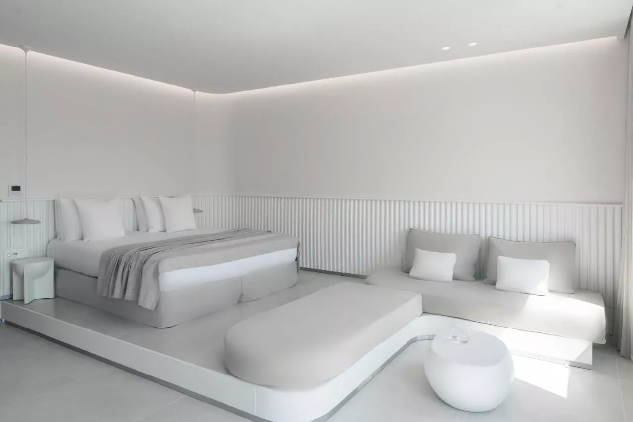 Dimensiuni: 85 mp Numar de camere: 1 camera Boasting Aegean sea views from its balcony, this large and bright suite offers a private outdoor pool, a large seating and dinning area along with a Nespresso coffee machine and capsules.