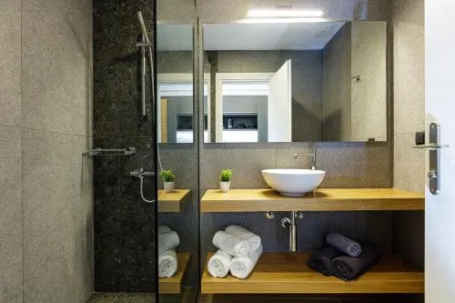 Dimensiuni: 41 mp Numar de camere: 1 camera The air-conditioned suite features 1 bedroom and 1 bathroom with a bath and a shower. The well-fitted kitchenette has a refrigerator, a microwave, a tea and coffee maker and a toaster. Featuring a balcony with sea views, this suite also offers soundproof walls and a flat-screen TV with satellite channels. The unit offers 2 beds. Baie privată cu cadă