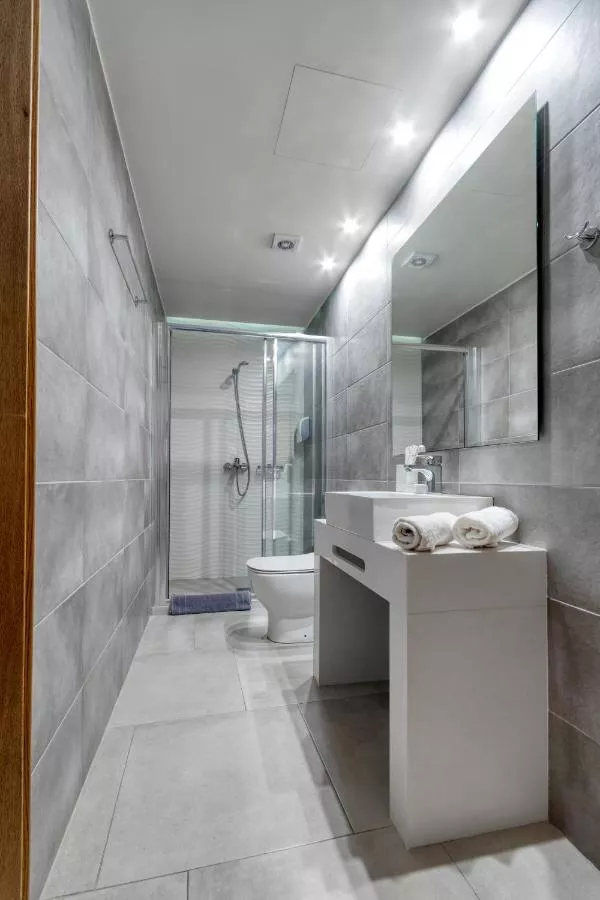 Dimensiuni: 12 mp Numar de camere: 10 camere Această cameră dublă este situată în anexa aflată chiar lângă clădirea principală. Camera izolată fonic are aer condiționat, fierbător electric și balcon cu vedere laterală la mare. Dotările includ TV Smart LED cu ecran de 39 inch, seif, set de cafea/ceai și baie privată. Baie privată cu duș