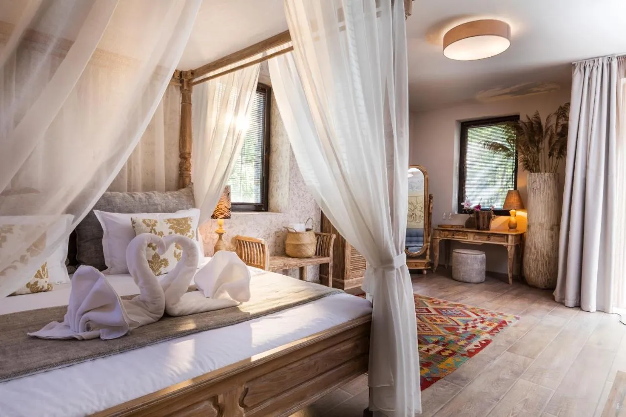 Baie: Halat de baie Prosoape Articole de toaletă gratuite Papuci de casă Uscător de păr Cadă spa Toaletă Duş Hârtie igienică Cadă Baie privată General : Pardoseală de lemn sau parchet Intrare privată Încălzire Plasă de ţânţari Aer condiţionat Media/Tehnologie: TV cu ecran plat TV Zonă de living: Canapea Facilităţile camerei: Priză lângă pat Canapea extensibilă Bucătărie: Frigider Distanțare fizică: Aer condiționat individual pentru fiecare cameră de la proprietate Dormitor: Garderobă sau dulap Activităţi: Cadă cu hidromasaj