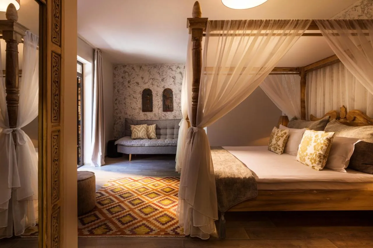 Dimensiuni: 30 mp Numar de camere: 1 camera The hot tub is a top feature of this suite. Boasting a private entrance, this air-conditioned suite comes with 1 living room, 1 separate bedroom and 1 bathroom with a bath and a shower. The suite features a wardrobe, a sofa, parquet floors, a carpeted floor, as well as a flat-screen TV. The unit has 2 beds. Baie privată cu cadă