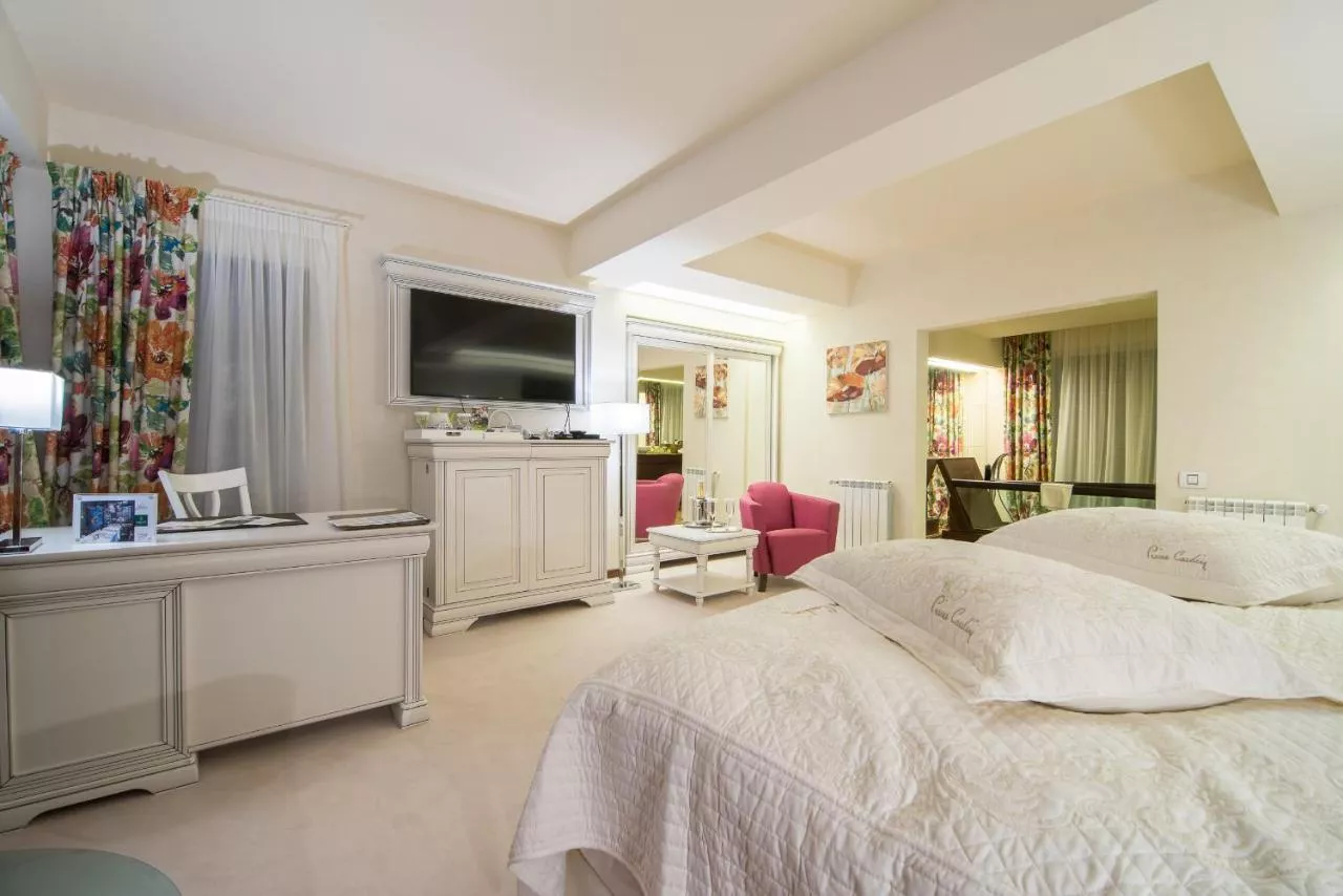 Dimensiuni: 44 mp Numar de camere: 1 camera Guests will have a special experience as the suite offers a fireplace. The air-conditioned suite features 1 bedroom and 1 bathroom with a bath and a shower. Featuring a balcony, this suite also provides soundproof walls, a tea and coffee maker and a flat-screen TV with cable channels. The unit offers 2 beds.