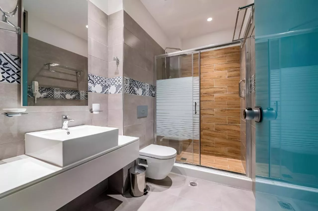 Dimensiuni: 31 mp Numar de camere: 1 camera The air-conditioned suite has 1 bedroom and 1 bathroom with a walk-in shower and a hairdryer. Boasting a terrace with sea views, this suite also offers soundproof walls and a flat-screen TV with cable channels. The unit has 1 bed. Baie privată cu duș